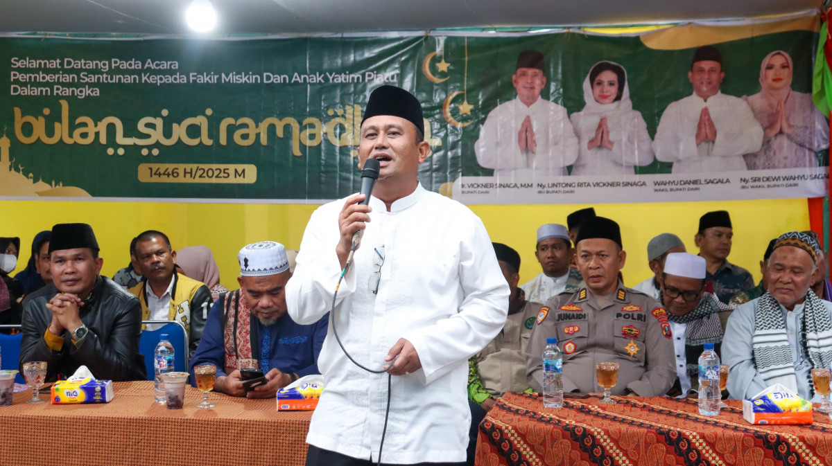 Dalam sambutannya, Wahyu mengucapkan selamat berbuka puasa kepada seluruh jama’ah Masjid Al-Iklas. Wahyu juga mengajak mereka untuk selalu bersama-sama dalam membangun Kabupaten Dairi.